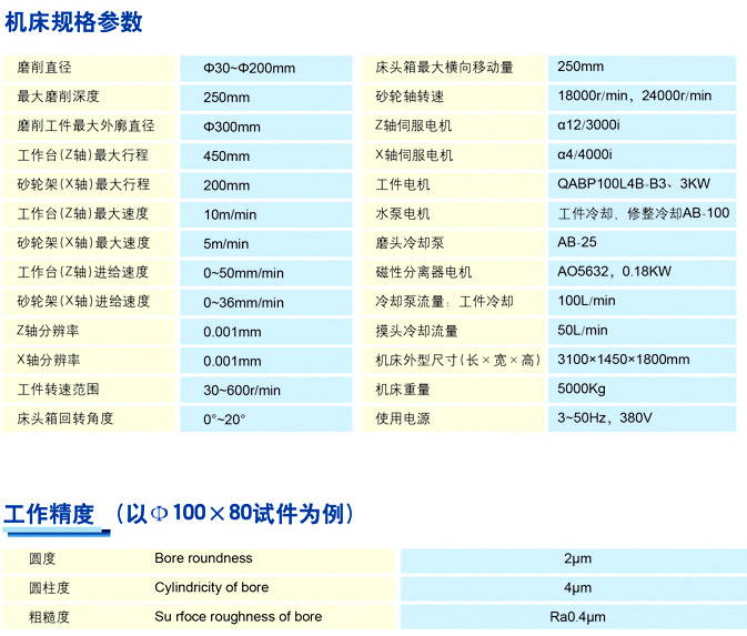 本机床是一台半自动数控内圆磨床,在一次装夹中可以加工机械零件多个表面的内孔,如:内凹端面及外端面,特别适合于汽车齿轮,中大规格轴承等零件的加工,如重型汽车变速箱中齿轮内孔,内凹端面及部分外圆(锥)的磨削加工,在机床配置快速夹具之后,可适应中批量生产的要求。