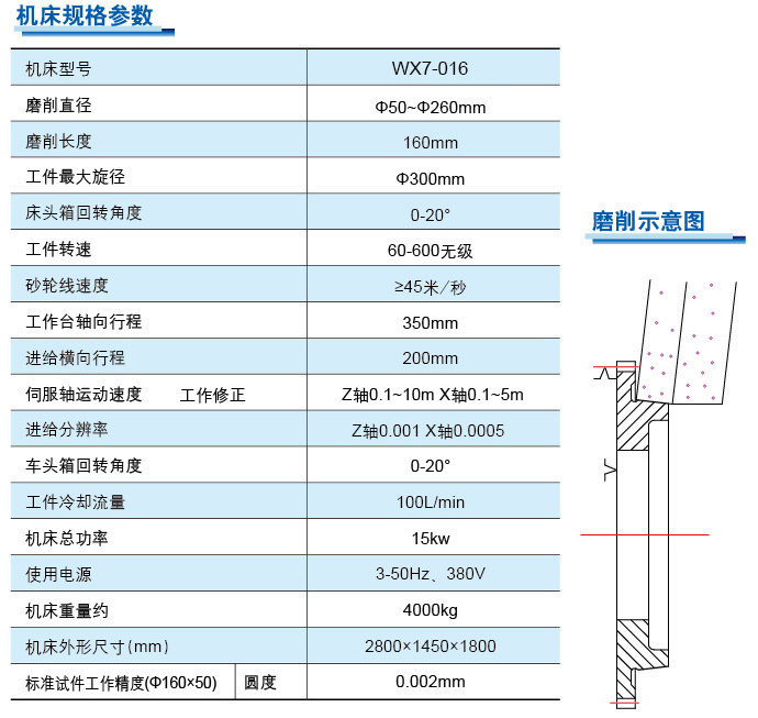 .砂轮主轴采用高刚性砂轮主轴单元.由静止变频器驱动。