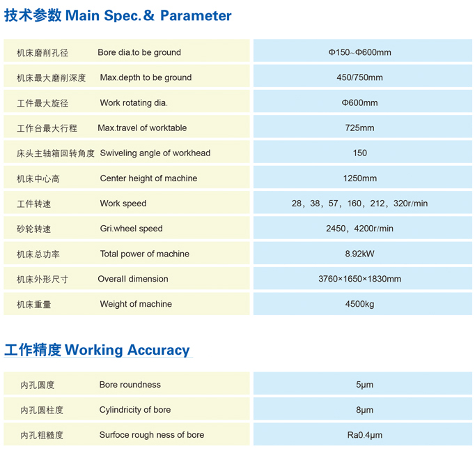 本机床是在 M250A机床上改进,适应磨削外径为150mm~600mm的轴承套圈及环形零件内孔。配有直径600mm的多磁术电磁无心夹具,整体式机械磨头。